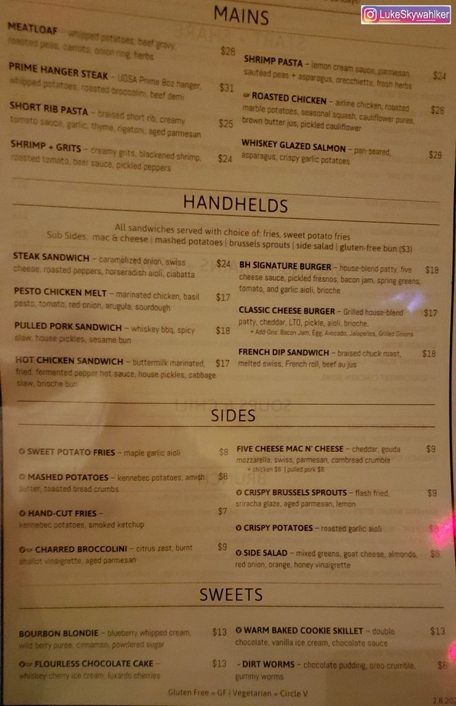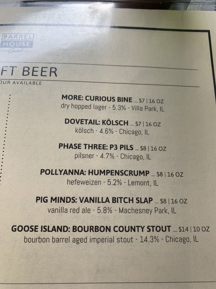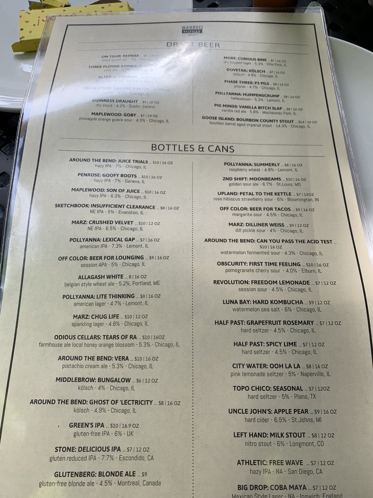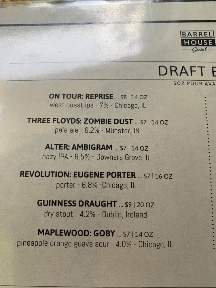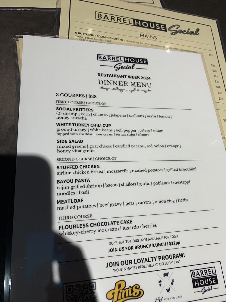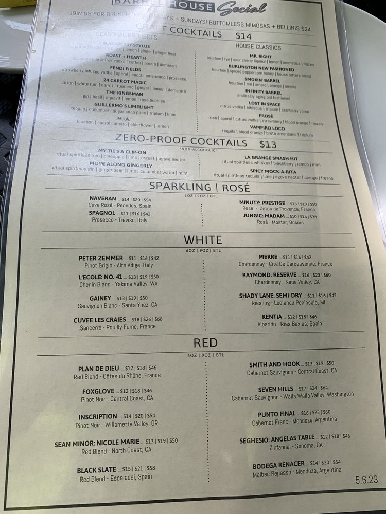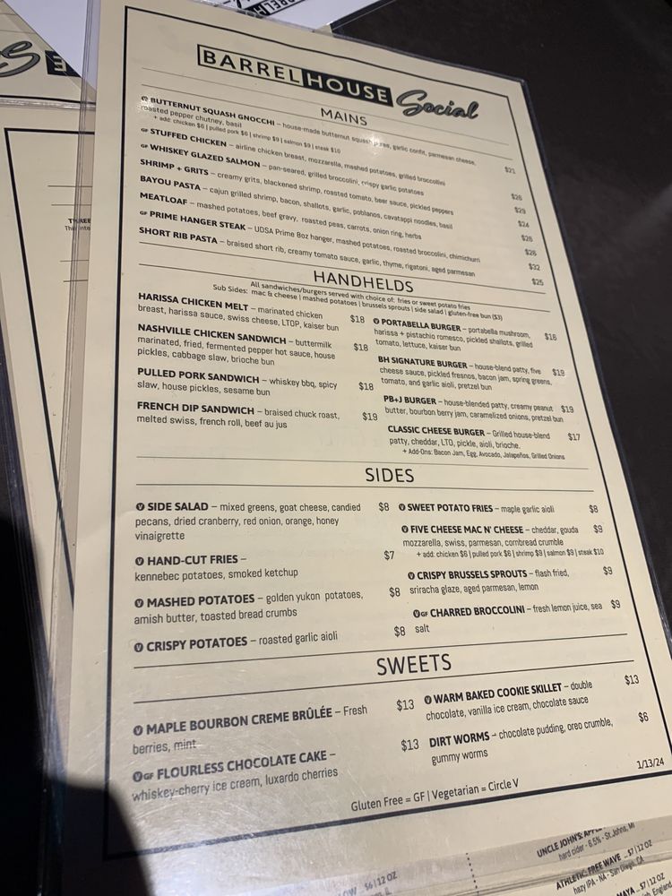 Barrel House Social Menu